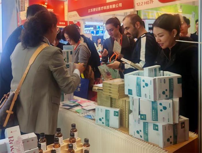 Rinne an fhoireann mhargaíochta dearadh an bhoth a phleanáil go cúramach, ag cruthú spás taispeántais uathúil a chumasc faisin le hatmaisféar gairmiúil aeistéitic leighis. Taobh istigh den bhoth, chruthaigh soilsiú bog ach geal ambiance compordach, rinne na taispeántais táirge a bhí socraithe go néata na táirgí a fheiceáil éasca, agus chuir na limistéir taispeána idirghníomhacha le spraoi agus rannpháirtíocht na cuairte, ag mealladh go leor cuairteoirí chun stop a chur agus brabhsáil.